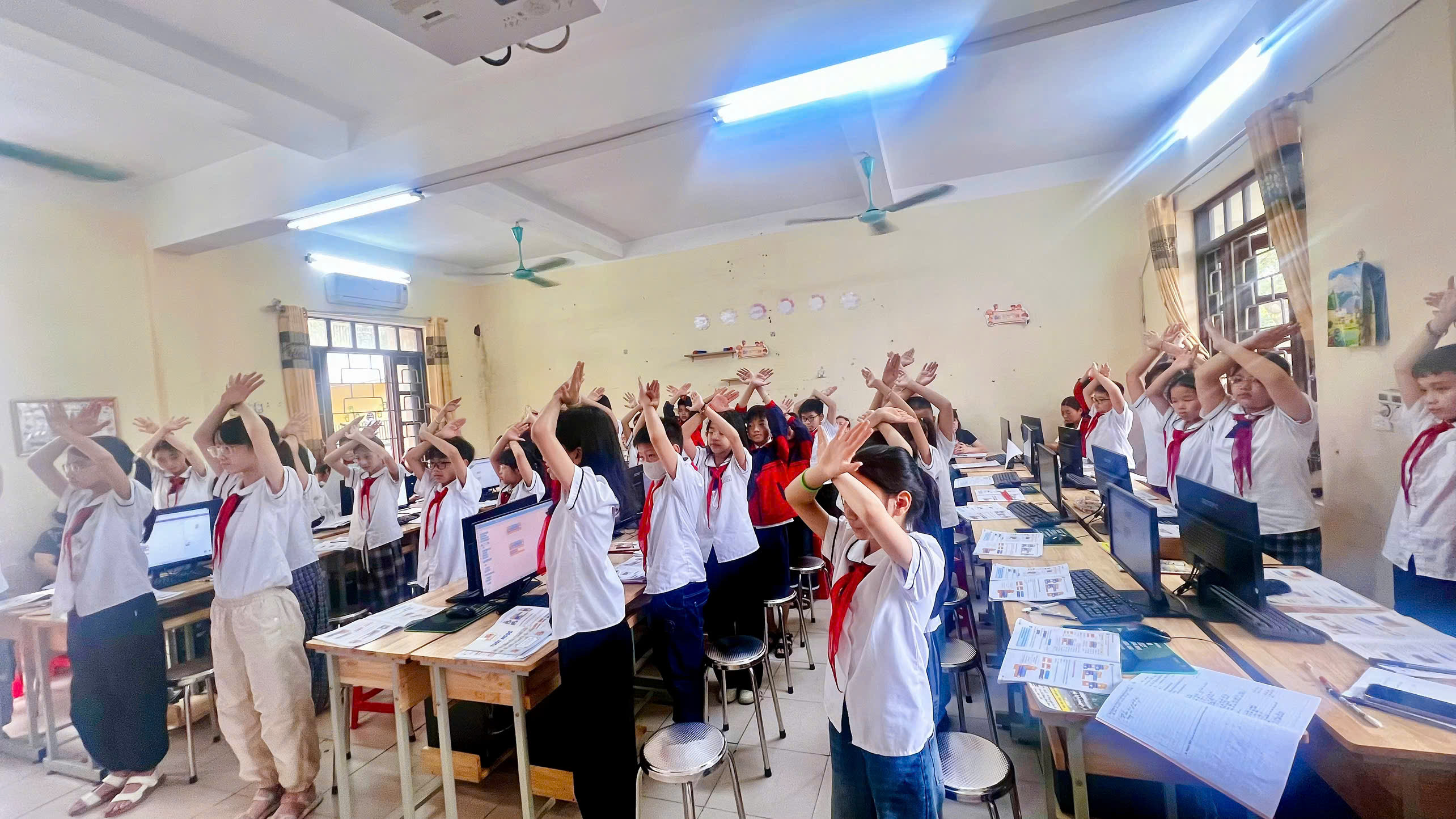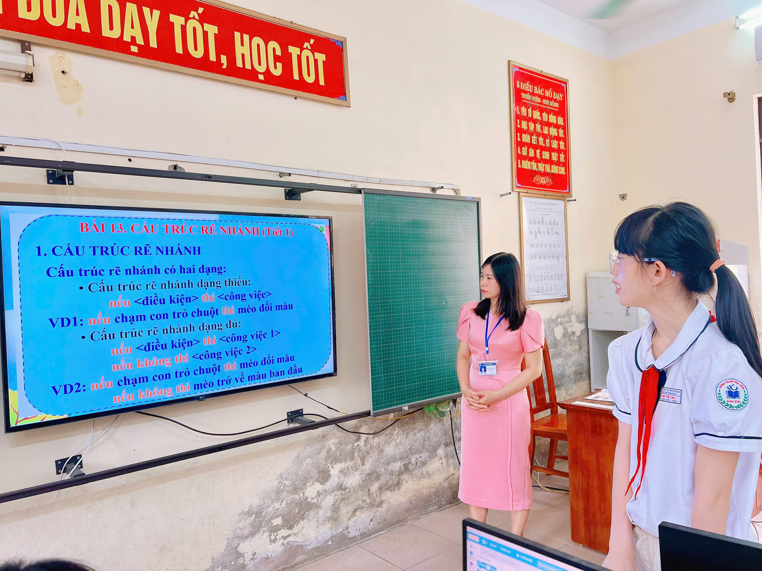 Không khí lớp học diễn ra sôi nổi, hào hứng. Các em học sinh tích cực tham gia, mạnh dạn chia sẻ ý kiến và từng bước xây dựng các câu lệnh rẽ nhánh đơn giản, qua đó phát huy khả năng tư duy và sáng tạo của bản thân.